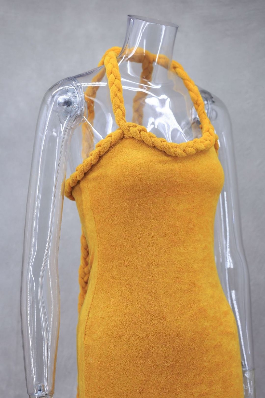 Hand-woven Twist Rope Shoulder Straps Tassel Skirt Short Dress