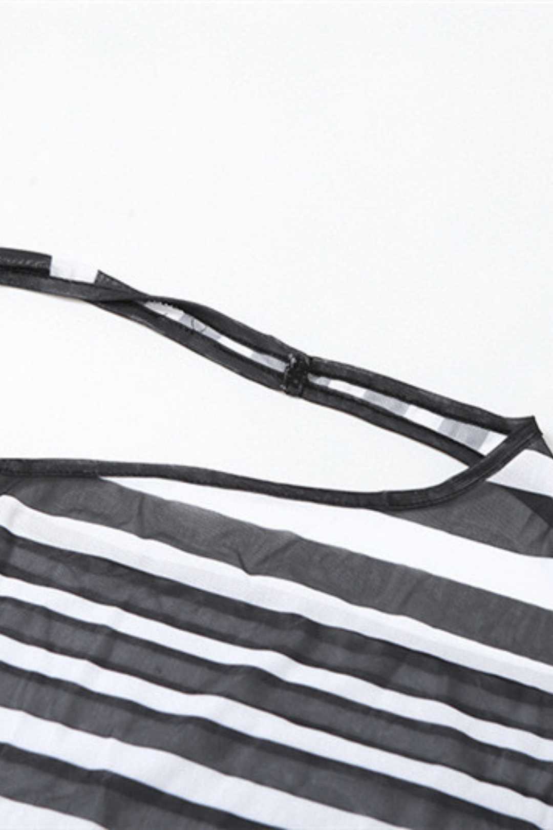 Name: One-shoulder Sexy See-through Mesh Striped Dress Categories: MINI DRESS