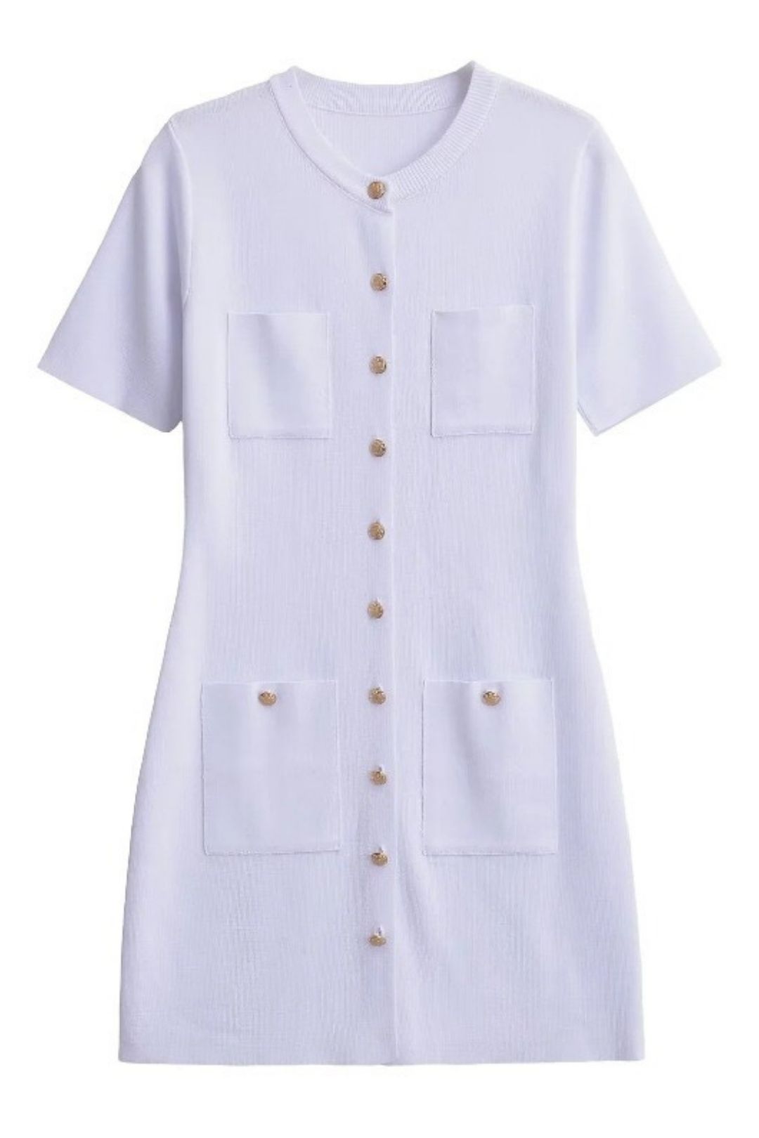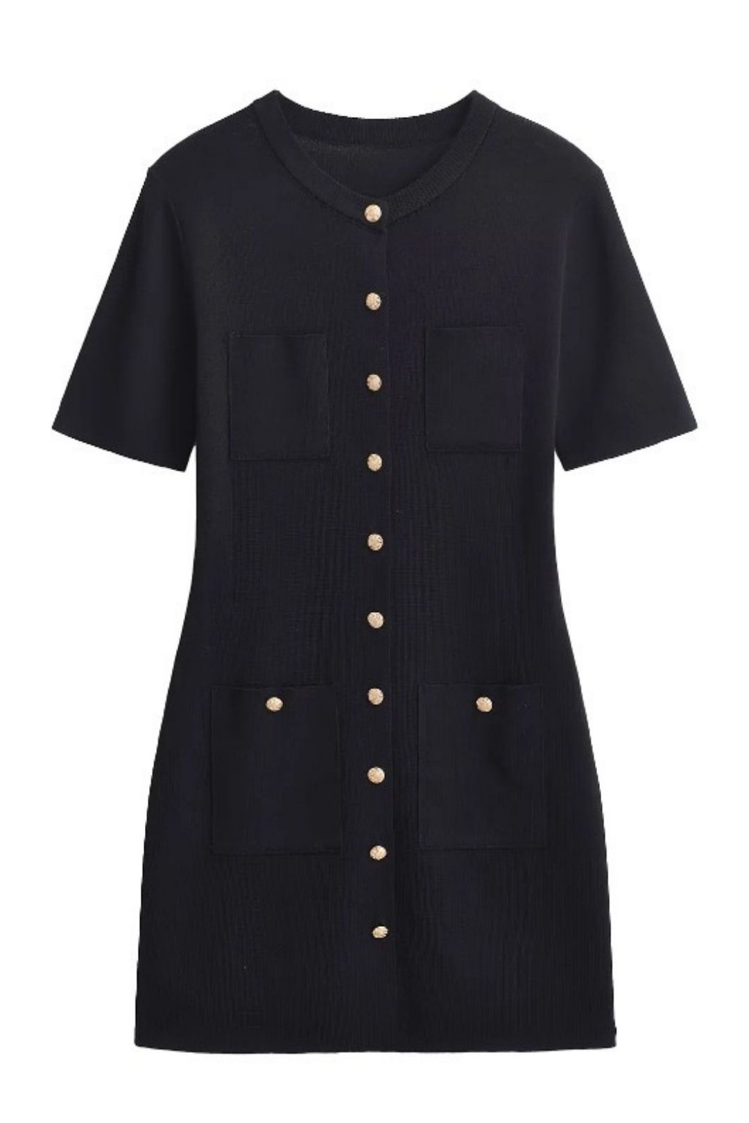 Name: Round Neck Single-breasted Design Slim Hip-covering Knitted Dress Categories: MINI DRESS
