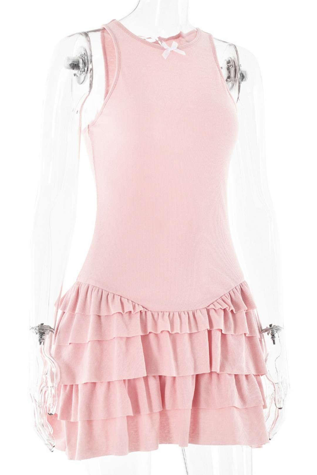 Name: Round Neck Sleeveless Stacked Ruffle Dress Categories: MINI DRESS