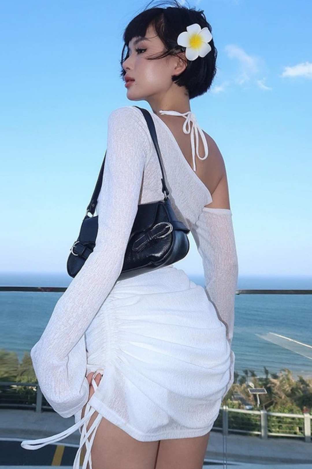 Name: Sexy Hollow See-through Oblique Collar Seaside Beach Hip-hugging Dress Categories: MINI DRESS