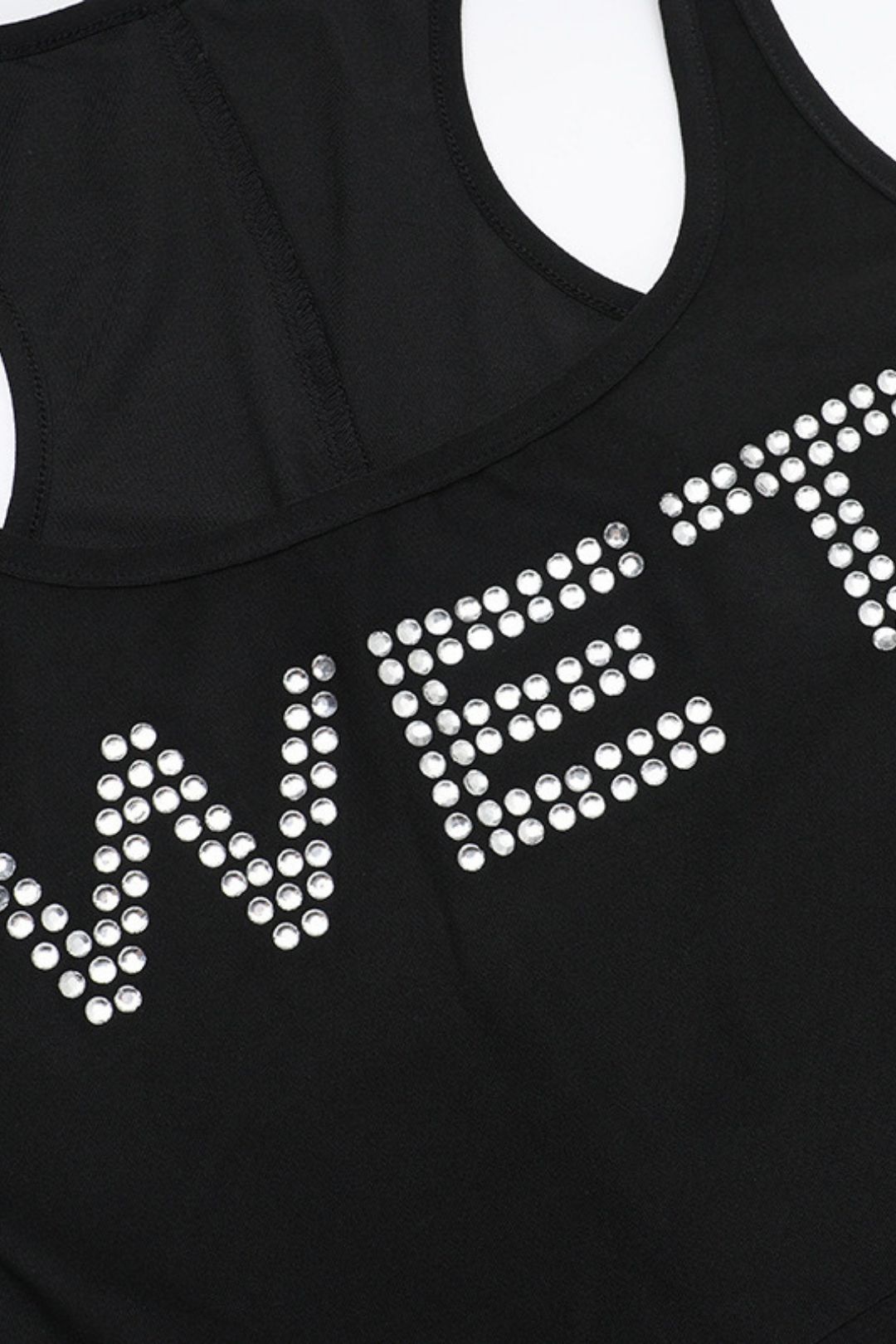 Slim Fit Letter Hot Diamond Vest Style Jumpsuit