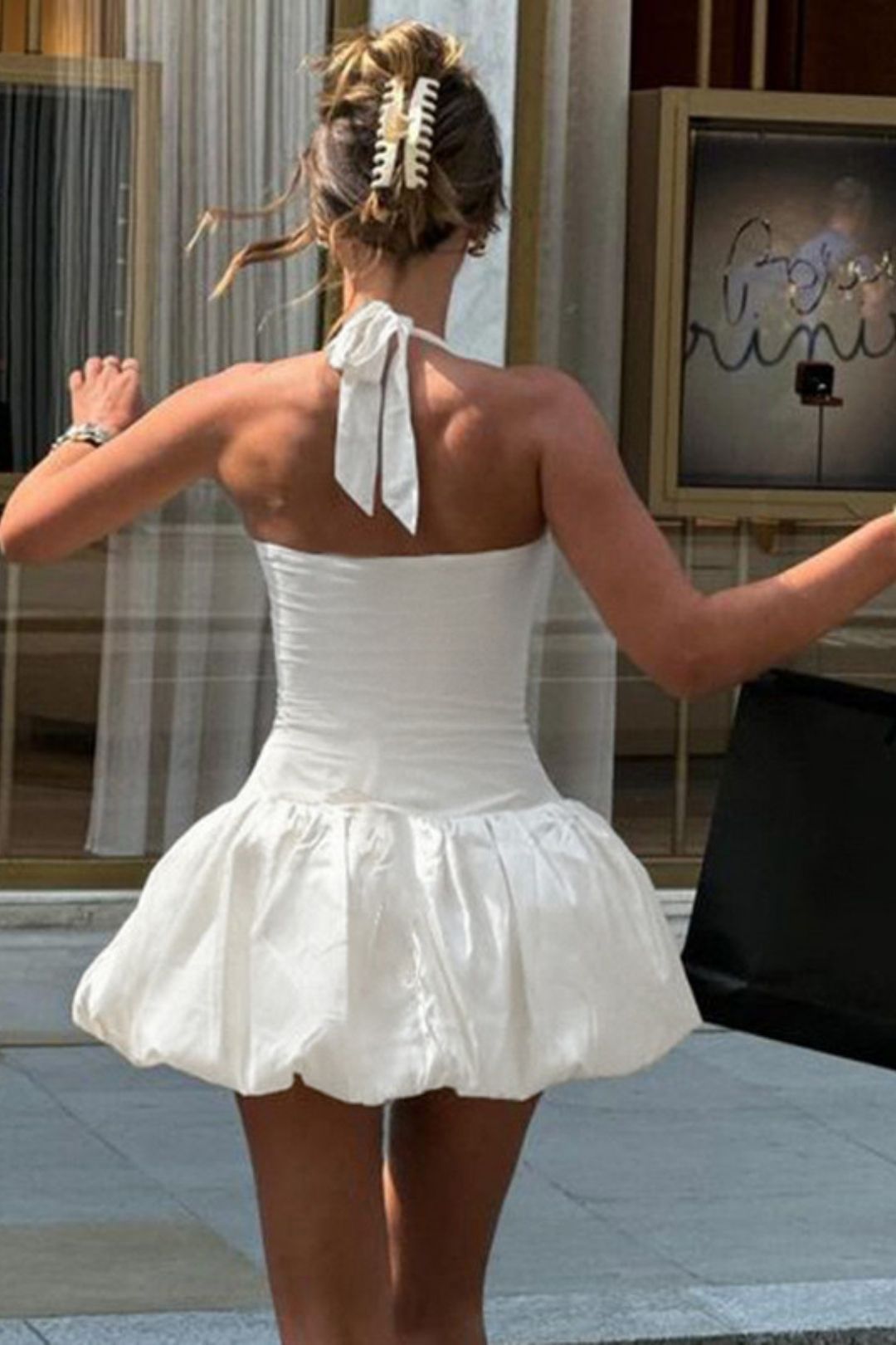 Name: Solid Color Halter Neck Waist Backless French Tutu Skirt Waist A-line Dress Categories: MINI DRESS