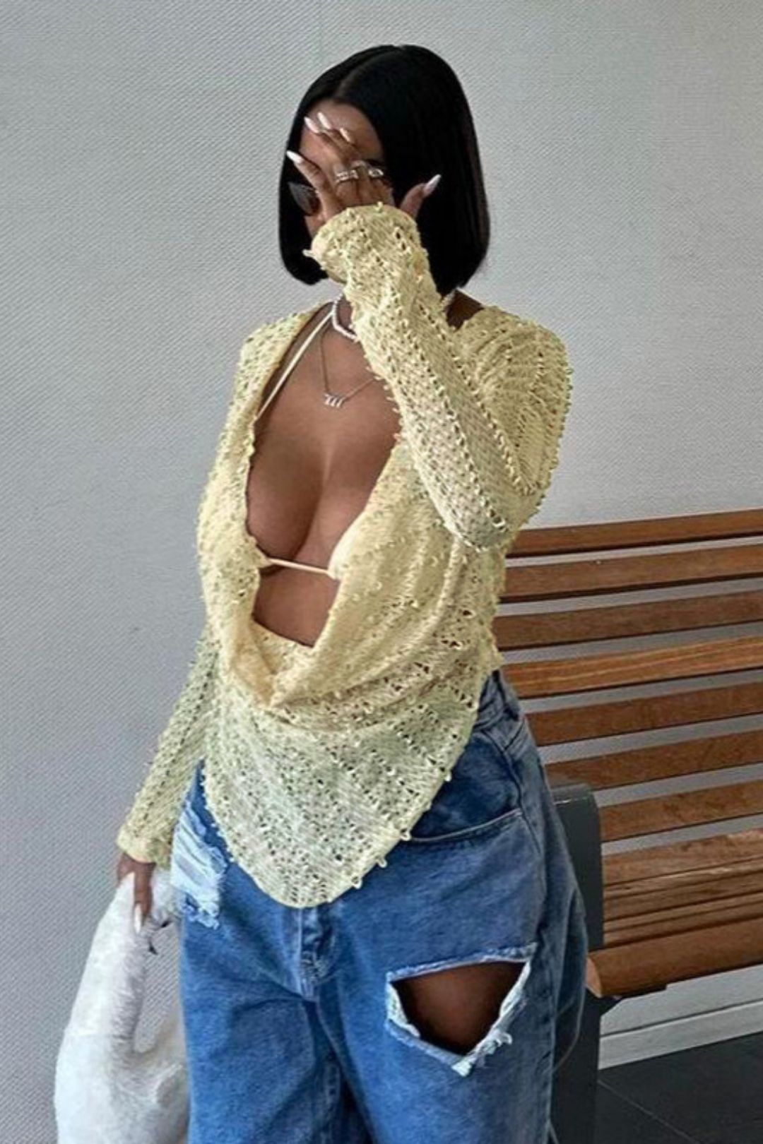 Special Fabric Pocket Collar Long-sleeved Tops