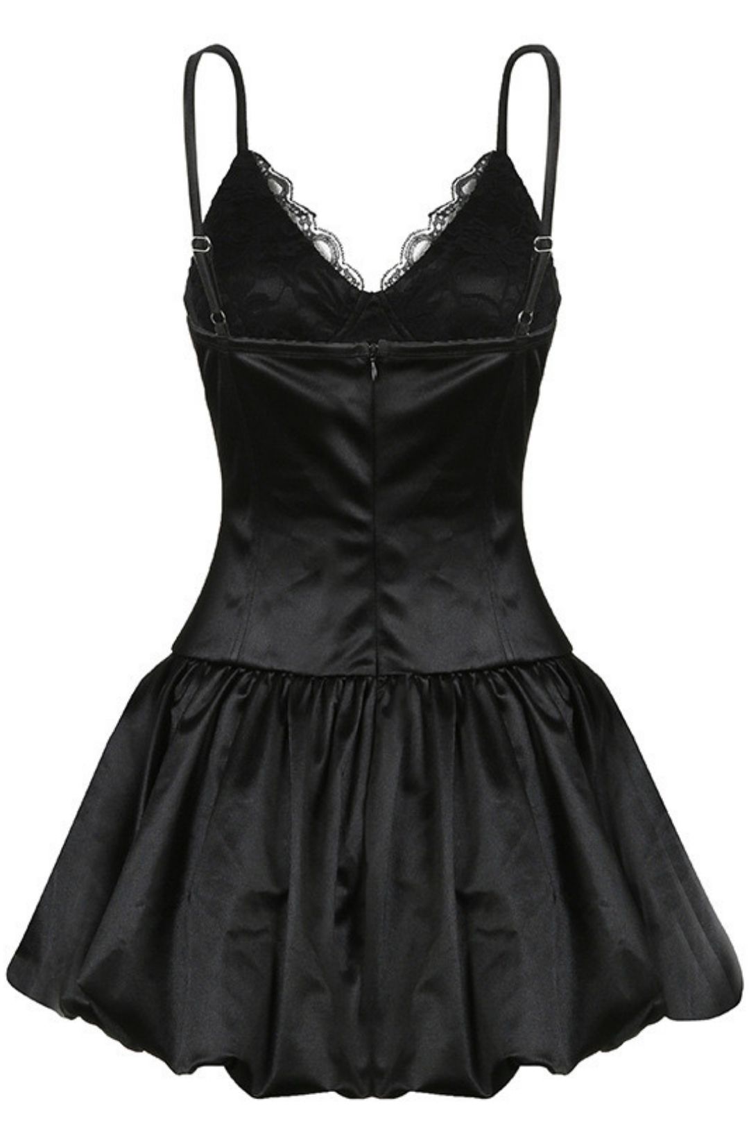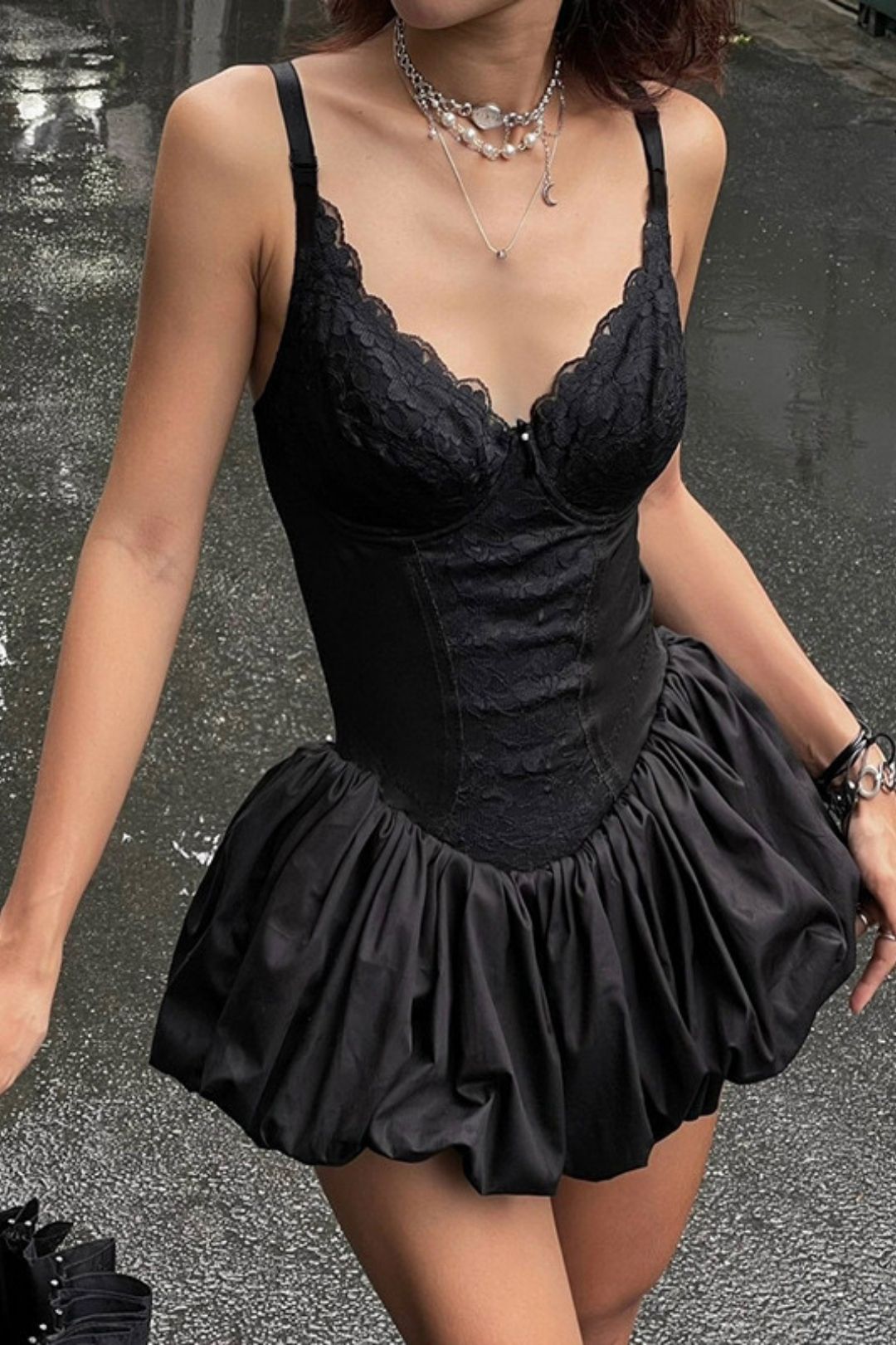 Name: V-neck Lace Patchwork Waist A-line Bud Skirt Categories: MINI DRESS