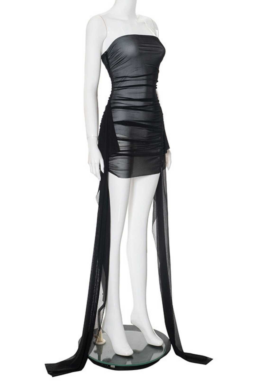Name: Wrapped Chest Corset Waist Stitching Mesh Ribbon Pleated Short Dress Categories: MINI DRESS